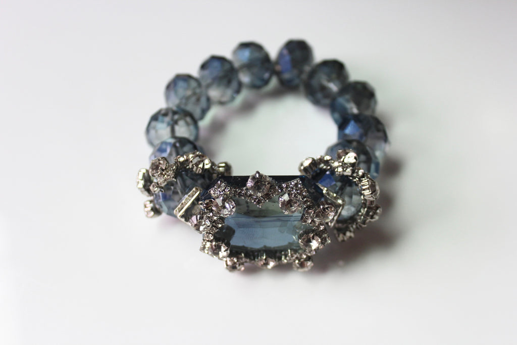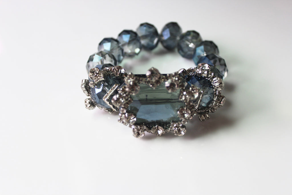 A modern classic designed to elevate your everyday style. The Gilded MARINIA features denim-hued genuine crystal beads, perfectly accented with shimmering embellishments that catch the light with every movement.